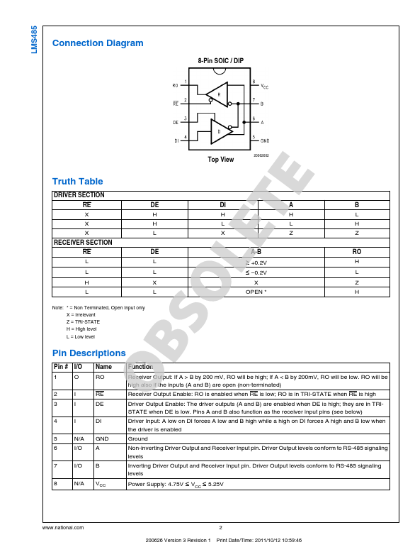 The LMS485 is a low power differential bus/line transceiver designed for high speed bidirectional data communication on multipoint bus transmission lines.