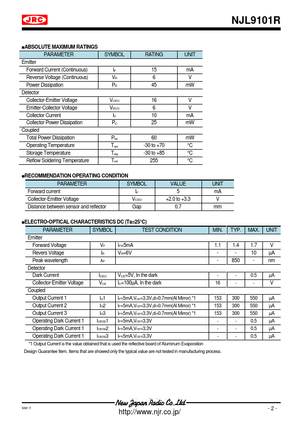 The NJL9101R is the high-precision optical position sensor, which is combining with a super luminosity RED LED and Si light-sensitive element into small package.