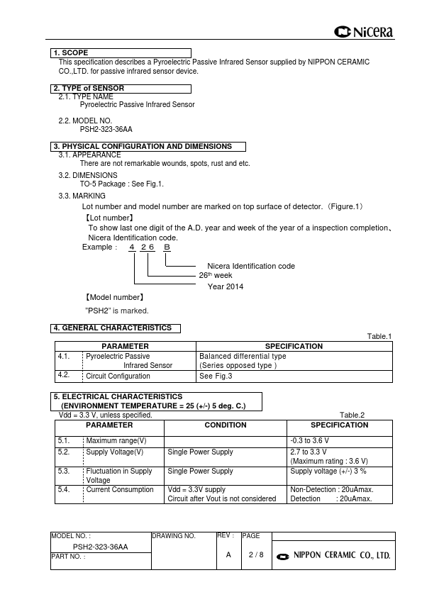 This datasheet PDF includes multiple part numbers: PSH2-323-36AA, PSH2-32336AA. Please refer to the document for exact specifications by model. |
