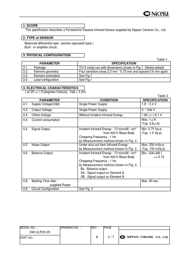 | Description | PYROELECTRIC PASSIVE INFRARED SENSOR |