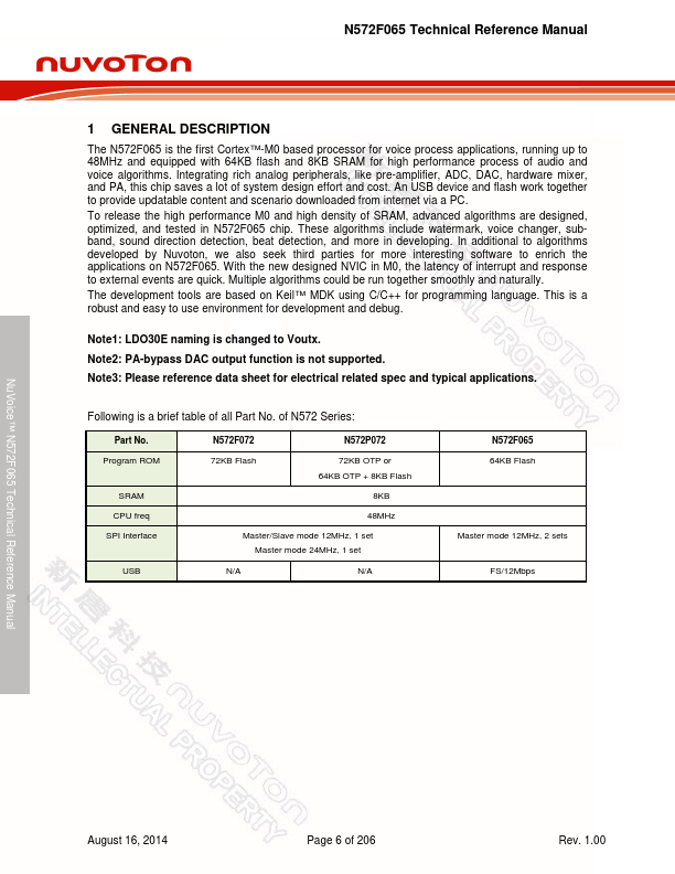 The N572F065 is the first Cortex™-M0 based processor for voice process applications, running up to 48MHz and equipped with 64KB flash and 8KB SRAM for high performance process of audio and voice algorithms. Integrating rich analog peripherals, like pre-amplifier, ADC, DAC, hardware mixer, and PA, this chip saves a lot of system design effort and cost. An USB device and flash work together to provide updatable...