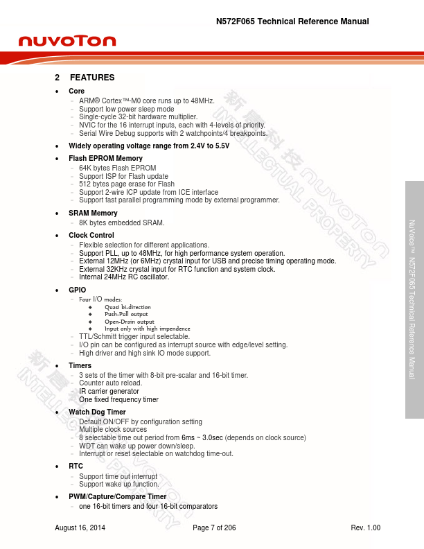 - ARM® Cortex™-M0 core runs up to 48MHz