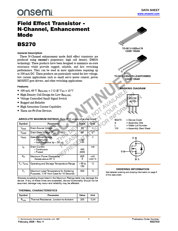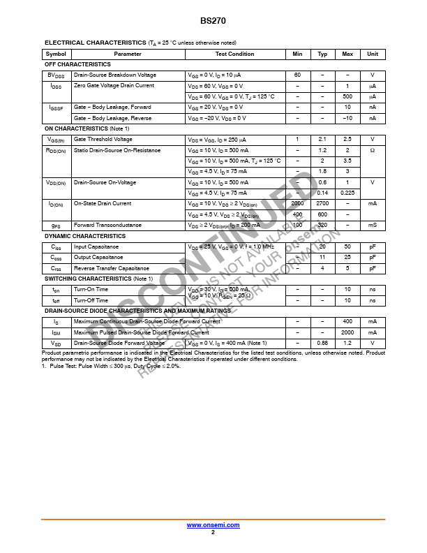 These N-Channel enhancement mode field effect transistors are produced using onsemi’s proprietary, high cell density, DMOS technology. These products have been designed to minimize on-state resistance while provide rugged, reliable, and fast switching performance. They can be used in most applications requiring up to 500 mA DC.