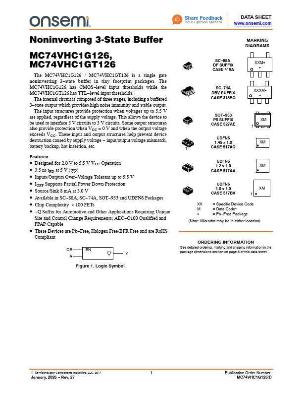 MC74VHC1G126 is Noninverting 3-State Buffer manufactured by onsemi.