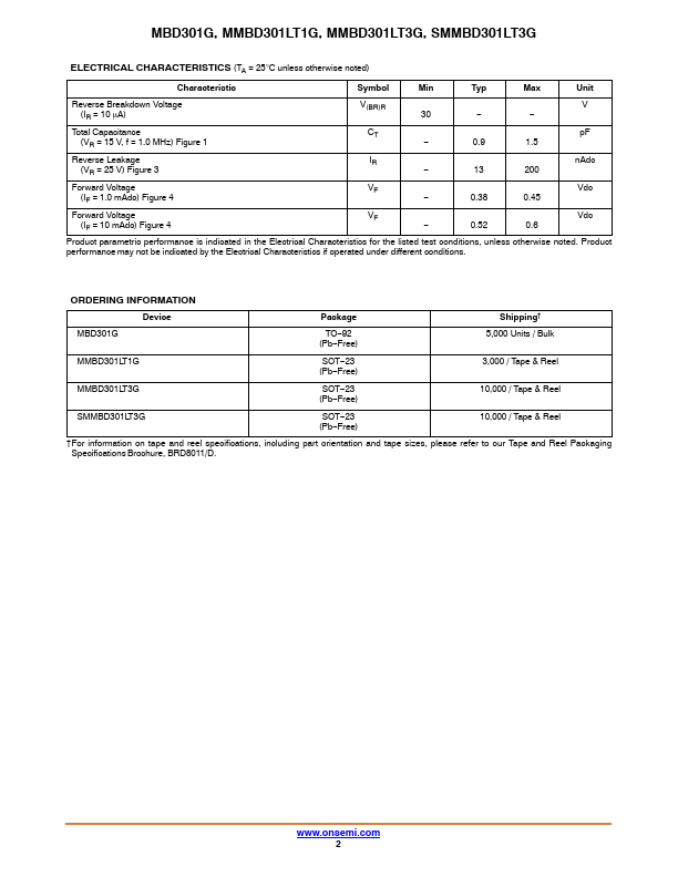 Silicon Hot-Carrier Diodes Schottky Barrier Diodes MBD301G, MMBD301LT1G, MMBD301LT3G, SMMBD301LT3G These devices are designed primarily for high−efficiency UHF and VHF detector applications. They are readily adaptable to many other fast switching RF and digital applications. They are supplied in an inexpensive plastic package for low−cost, high−volume consumer and industrial/mercial requirements.