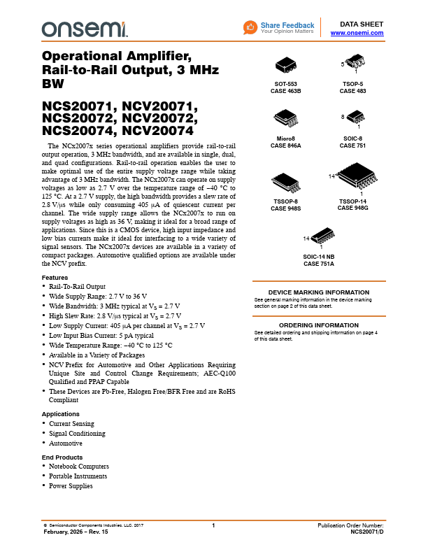 NCS20071, NCV20071, NCS20072, NCV20072, NCS20074, NCV20074