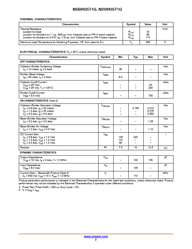DATA SHEET www.onsemi.com High Current Bias Resistor Transistor PNP Silicon NSB9435T1G,.