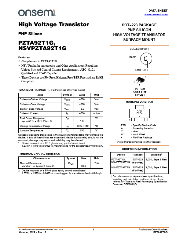 | Datasheet | NSVPZTA92T1G-ONSemiconductor.pdf |