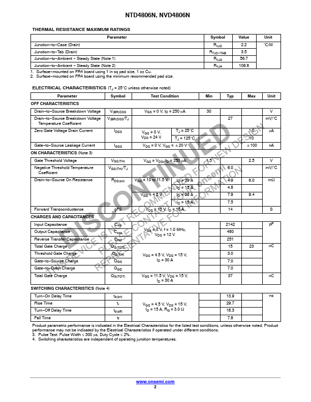 • Low RDS(on) to Minimize Conduction Losses • Low Capacitance to Minimize Driver Losses • Optimized Gate Charge to Minimize Switching Losses • AEC−Q101 Qualified and PPAP Capable − NVD4806N