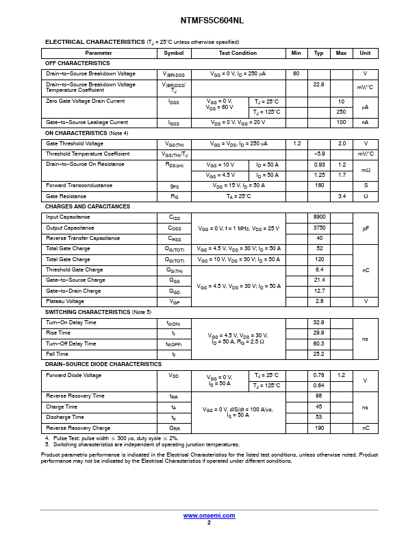 | NTMFS5C628NL | 60V 150A N-Channel Power MOSFET |
