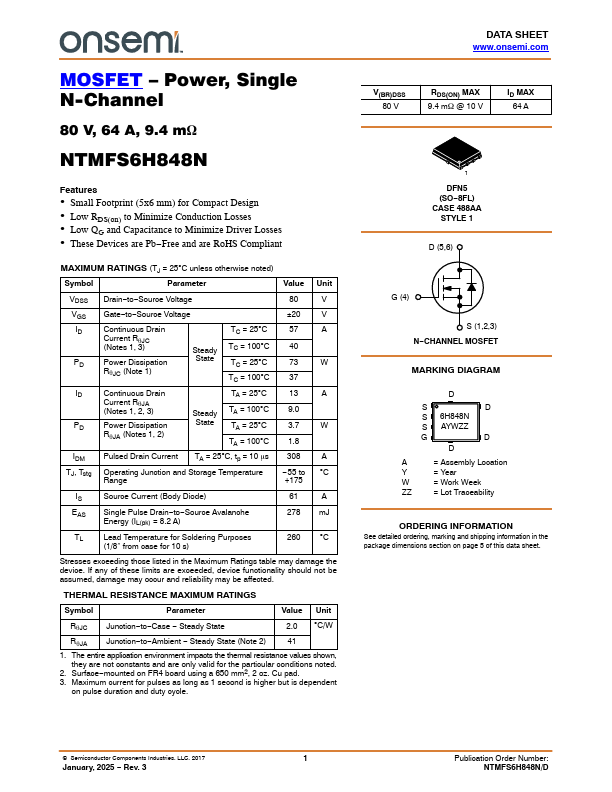Small Footprint (5x6 mm) for Compact Design Low RDS(on) to Minimize Conduction Losses Low QG and Capacitance to Minimize Driver Losses These Devices are Pb−Free and are RoHS Compliant