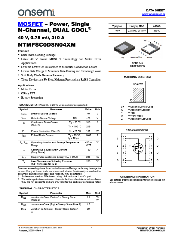 | NTMFSC2D6N08X | 80V 154A N-Channel Power MOSFET | onsemi |