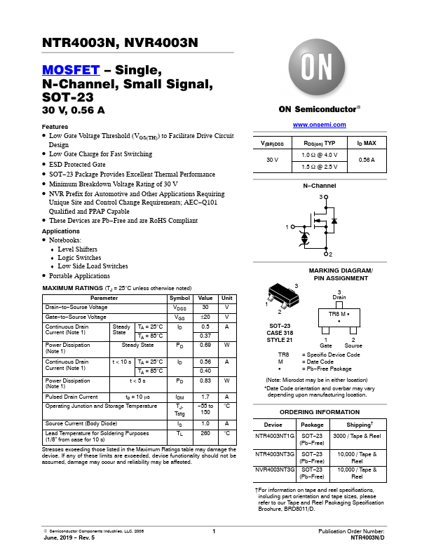 | Part number | NTR4003N |