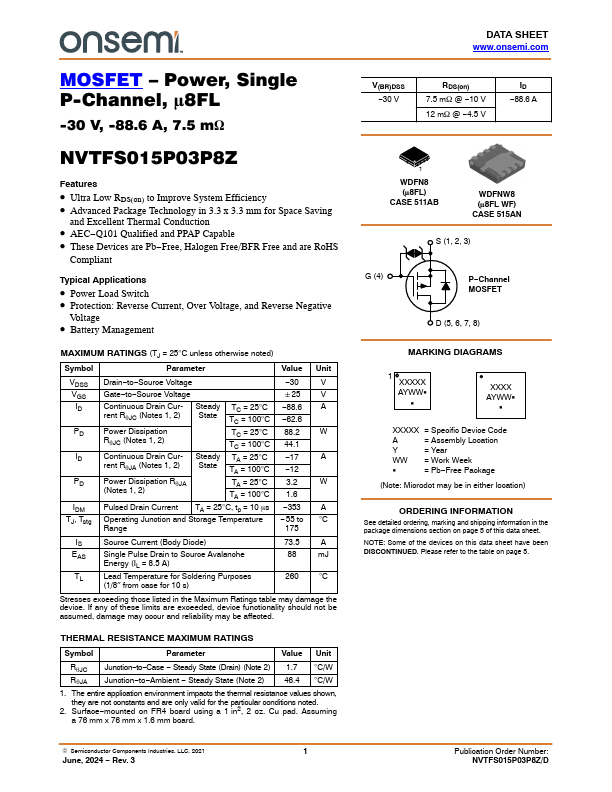 • AEC−Q101 Qualified and PPAP Capable • These Devices are Pb−Free, Halogen Free/BFR Free and are RoHS