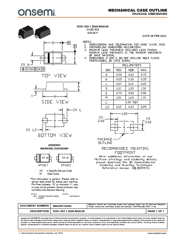- For additional information on our Pb−Free strategy and soldering details, please download the onsemi Soldering and Mounting Techniques Reference Manual, SOLDERR