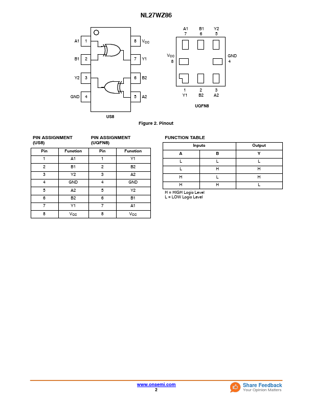 Dual 2-Input Exclusive-OR Gate NL27WZ86 The NL27WZ86 is a high performance dual 2-input Exclusive-OR Gate operating from a 1.65 V to 5.5 V supply.