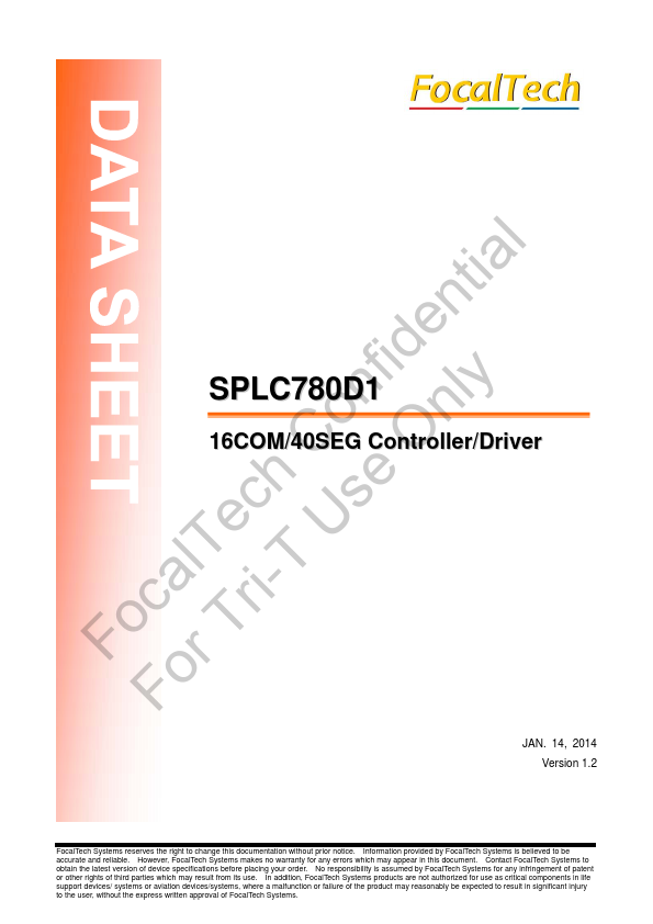 | SPLC780C | Sunplus | 16com / 40seg Controller / Driver |
