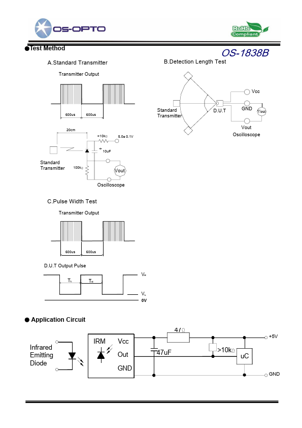The OS-1838B is miniaturized infrared receivers for remote control and other applications requiring improved ambient light rejection.