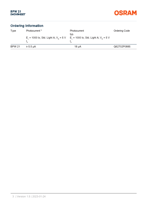 | Part number | BPW21 |