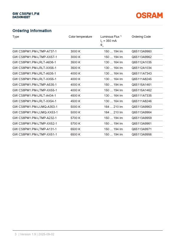 - Luminous efficacy: typ. 155 lm/W @ 5000 K, 85 °C