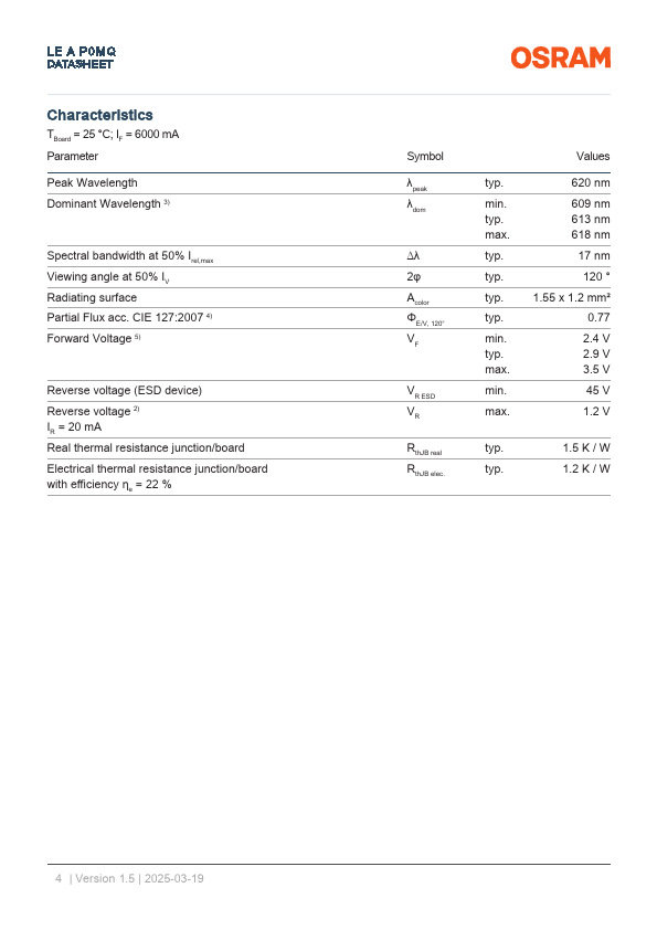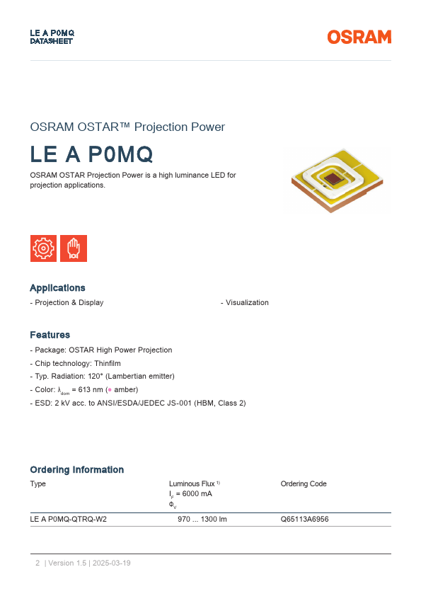 LE A P0MQ DATASHEET OSRAM OSTAR™ Projection Power LE A P0MQ OSRAM OSTAR Projection Power is a high luminance LED for projection applications. Applications - Projection & Display - Visualization.