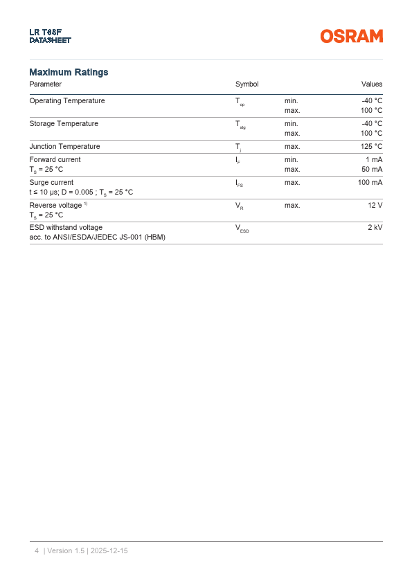 - ESD: 2 kV acc. to ANSI/ESDA/JEDEC JS-001 (HBM)