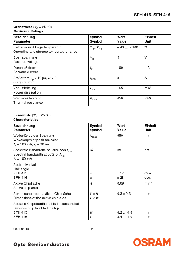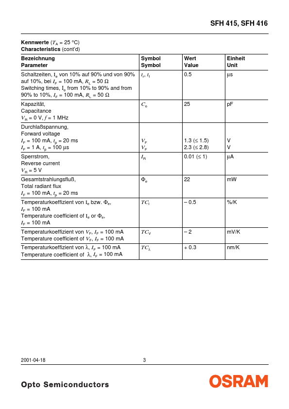 | Part number | SFH416 |