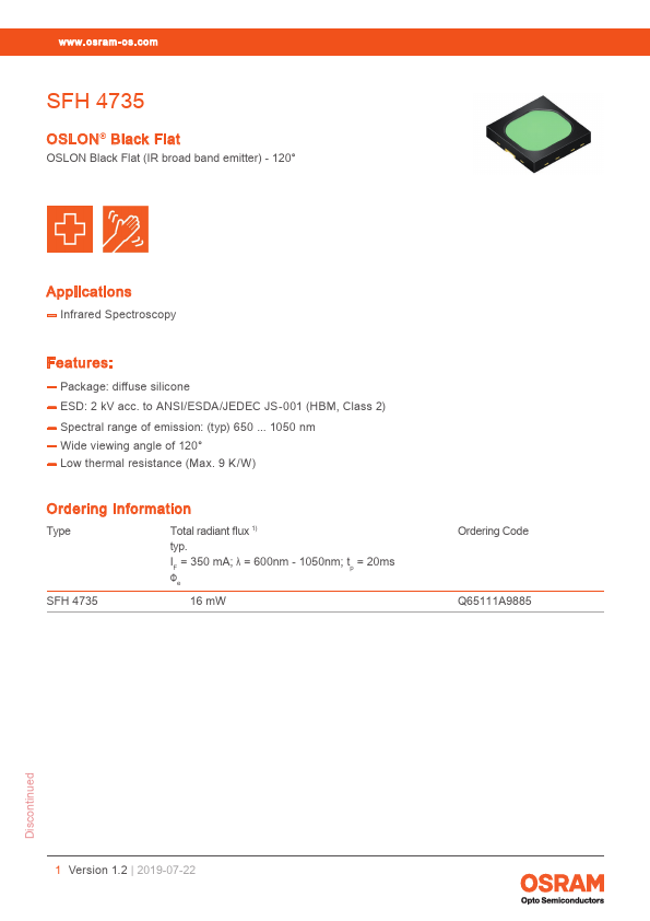 Prowdwuwk.todsartaemn-bolast.tco|mVersion 1.1 SFH 4735 SFH 4735 OSLON® Black Flat OSLON Black Flat (IR broad band emitter) - 120° Applications Infrared Spectroscopy.