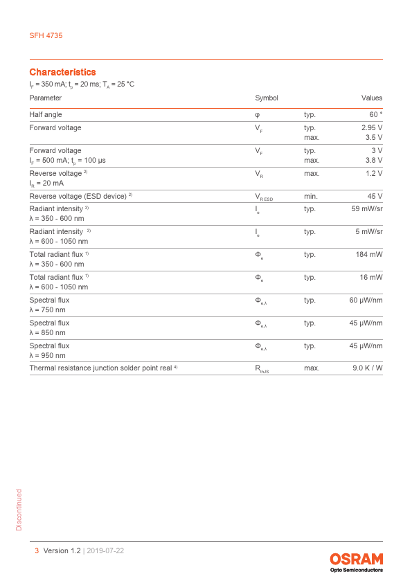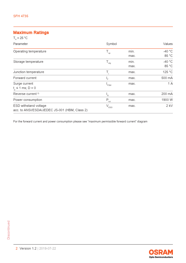 - Package: diffuse silicone --ESD: 2 kV acc. to ANSI/ESDA/JEDEC JS-001 (HBM, Class 2) --Spectral range of emission: (typ)