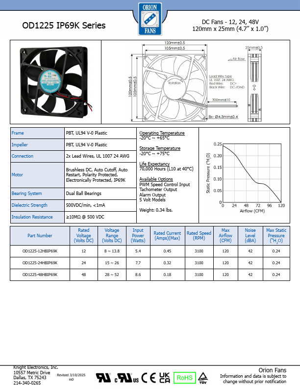 OD1225 IP69K Series DC Fans - 12, 24, 48V 120mm x 25mm (4.7” x 1.
