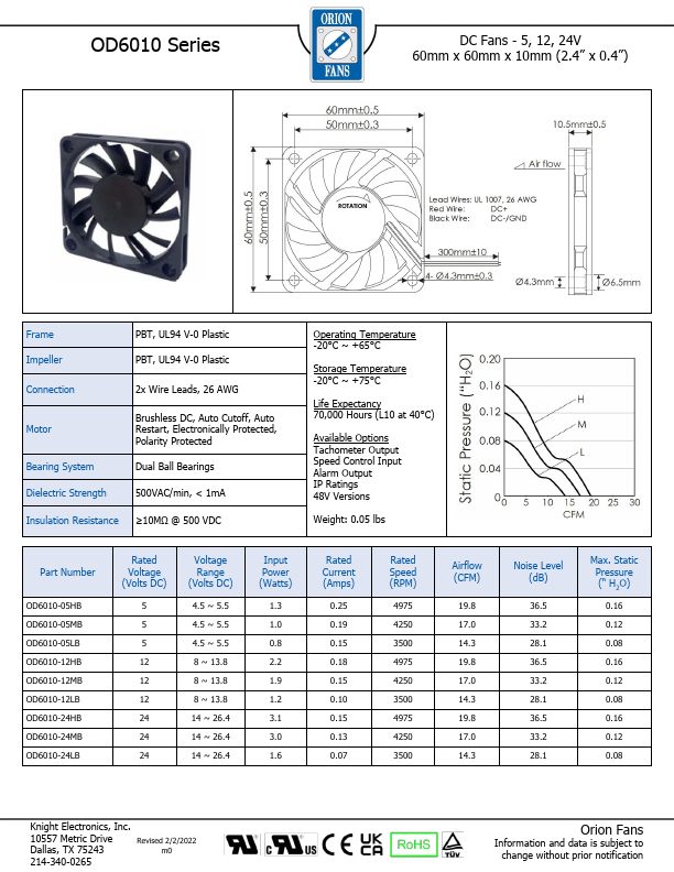 10557 Metric Drive Dallas, TX 75243 Revised 2/2/2022 m0 214-340-0265 Orion Fans Information and data is subject to change without prior notification.