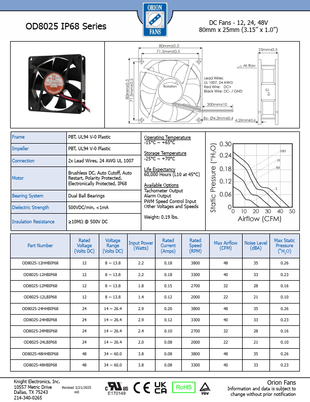 10557 Metric Drive Revised 3/21/2025 Dallas, TX 75243 m0 214-340-0265 Orion Fans Information and data is subject to change without prior notification.