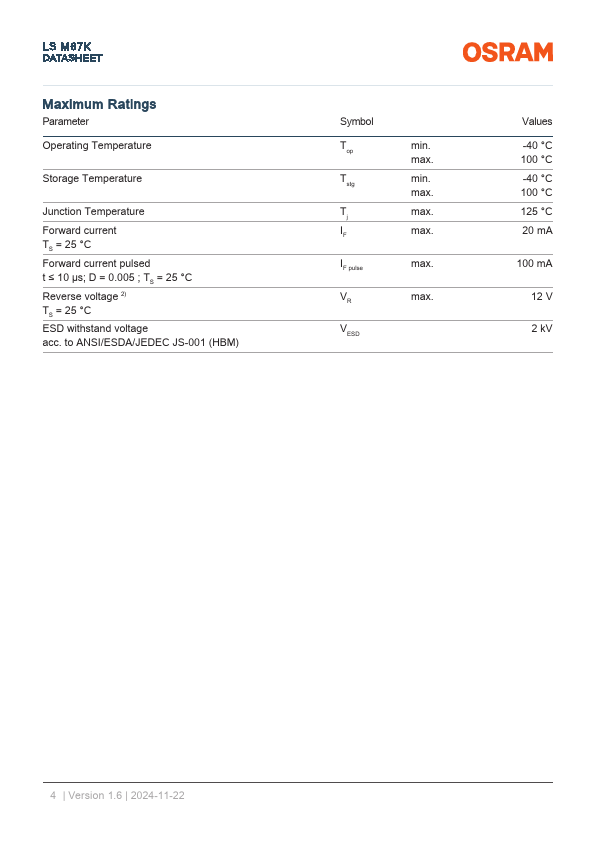- ESD: 2 kV acc. to ANSI/ESDA/JEDEC JS-001 (HBM)