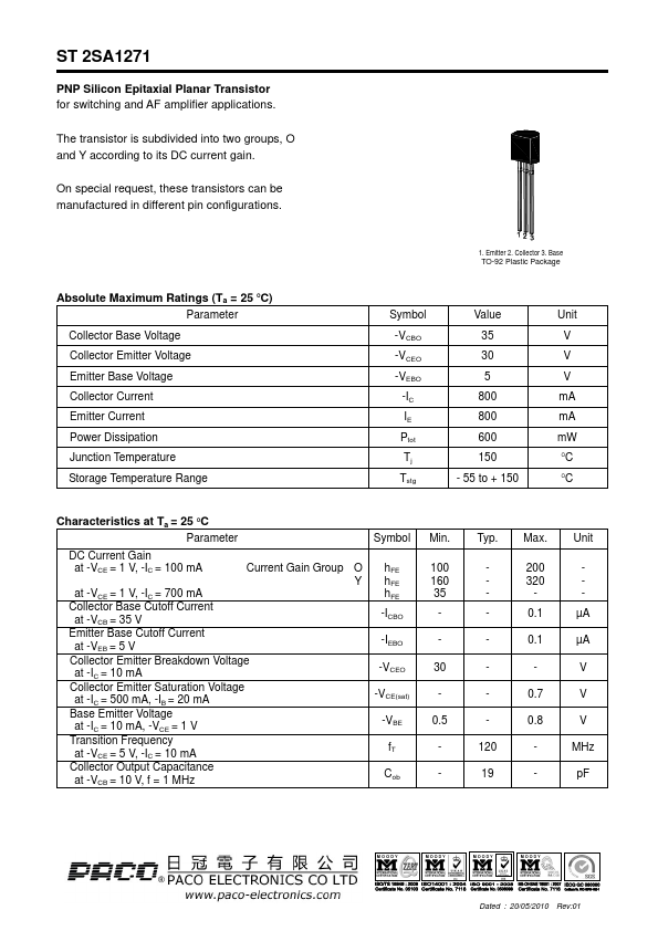 - Description: PNP Silicon Epitaxial Planar Transistor
