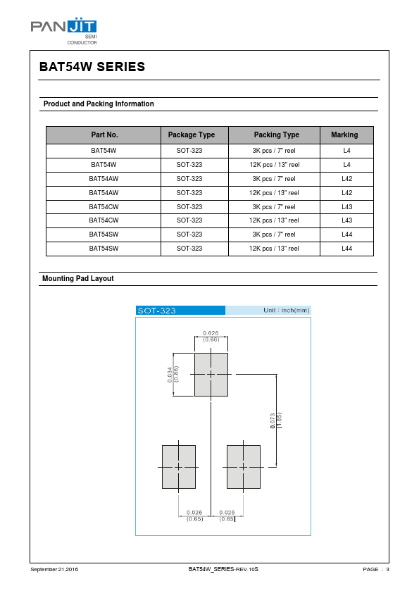 Overview: BAT54W SERIES SURFACE MOUNT SCHOTTKY BARRIER VOLTAGE 30 Volt CURRENT 0.