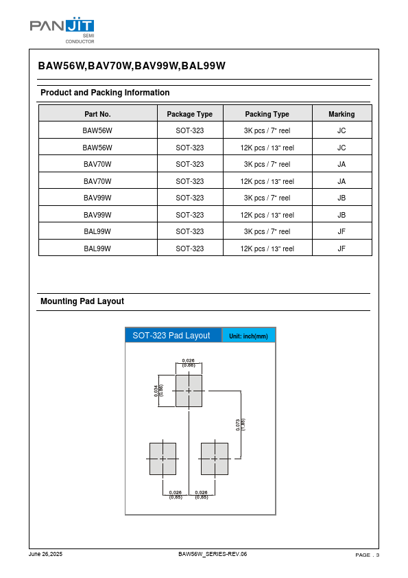 BAW56W,BAV70W,BAV99W,BAL99W SURFACE MOUNT SWITCHING DIODES VOLTAGE 100Volt POWER 200mWatt.