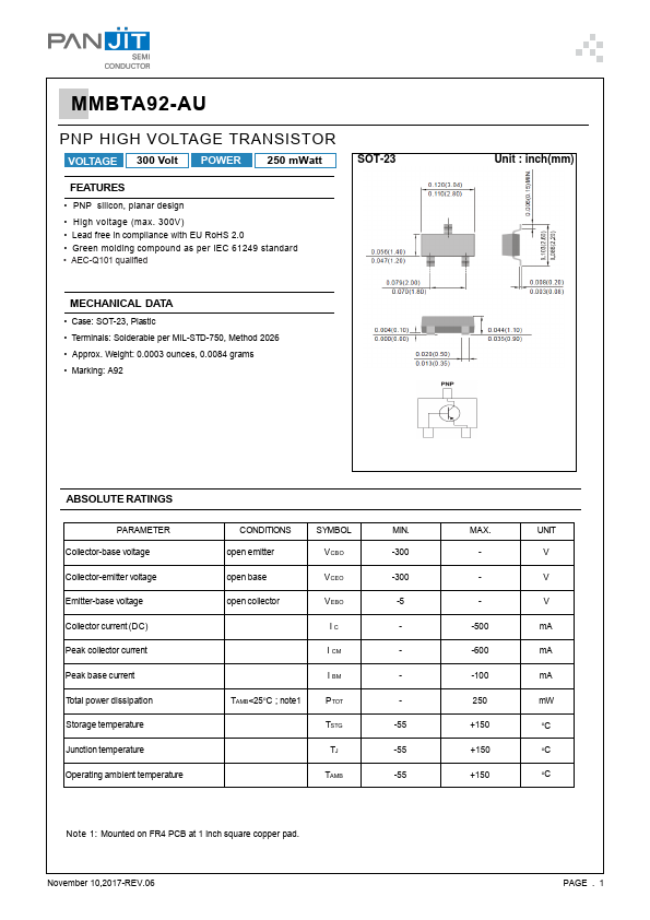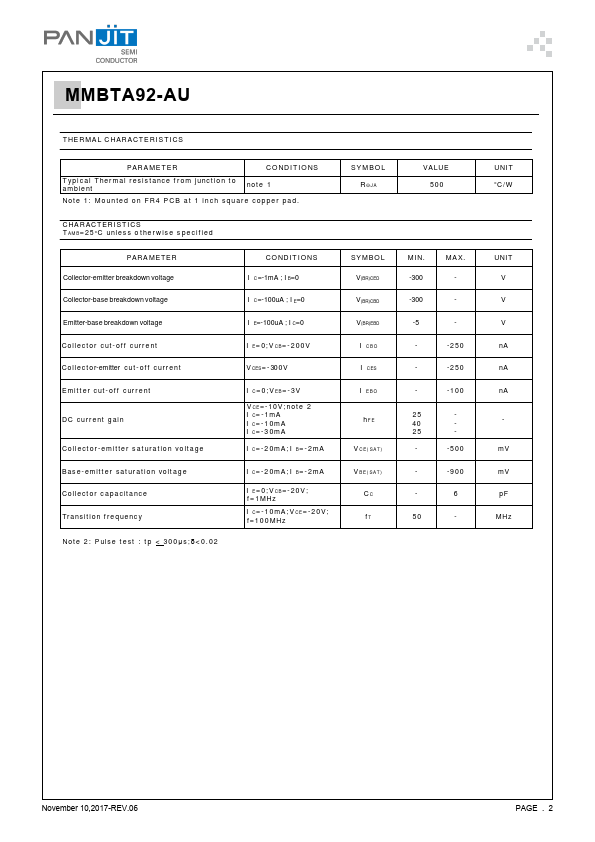| Datasheet | MMBTA92-AU-PANJIT.pdf |