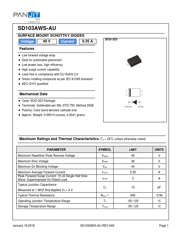 | Datasheet | SD103AWS-AU-PANJIT.pdf |