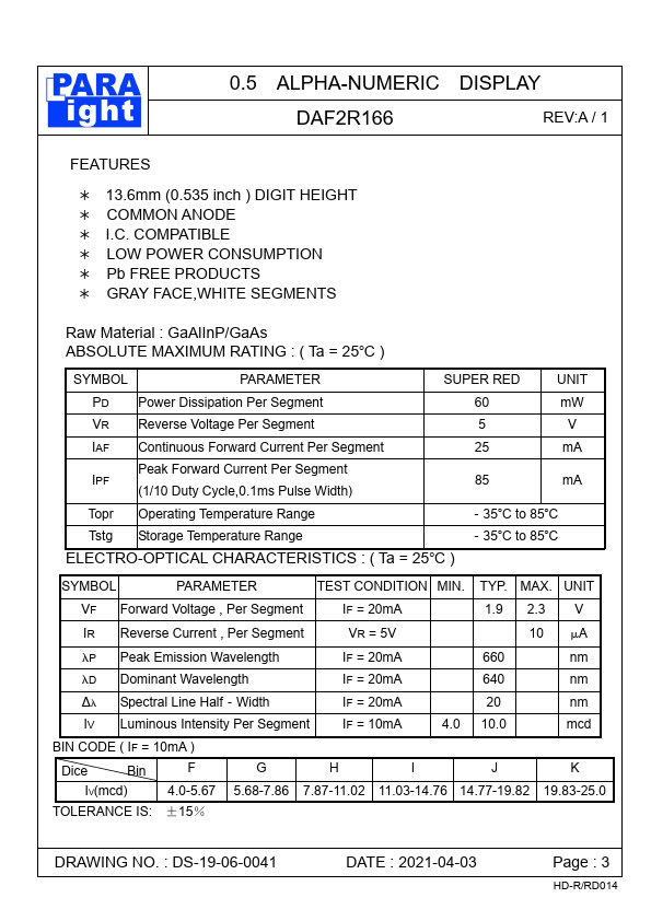 | Description | 0.5 ALPHA-NUMERIC DISPLAY |
