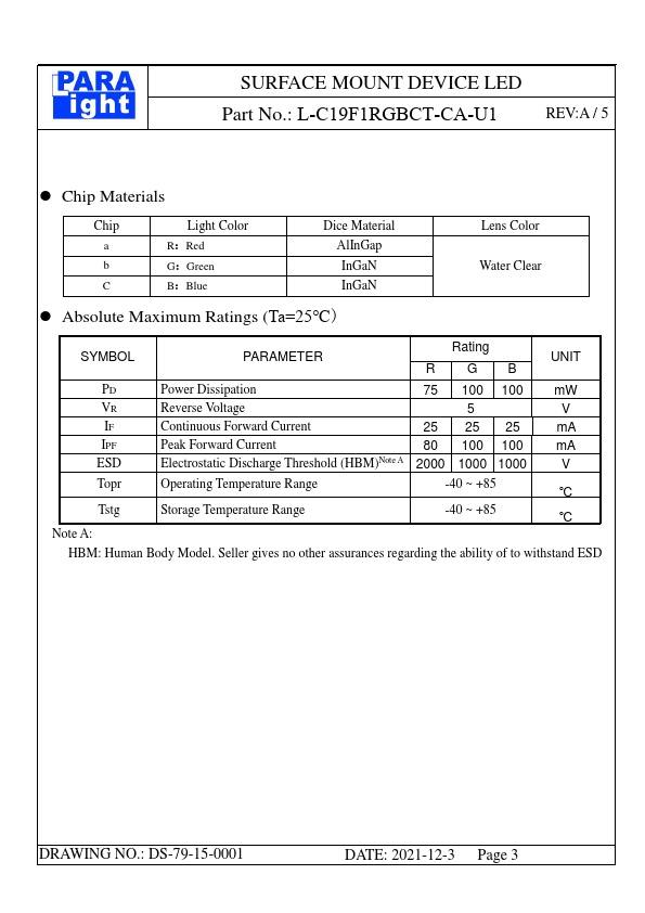 | Part number | L-C19F1RGBCT-CA-U1 |