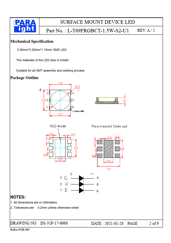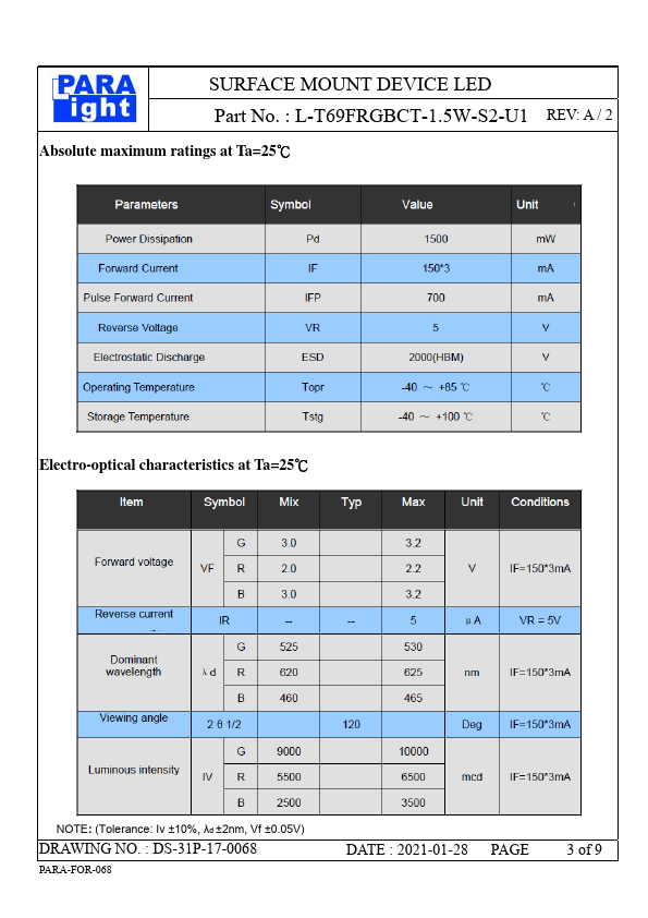 | Part number | L-T69FRGBCT-1.5W-S2-U1 |