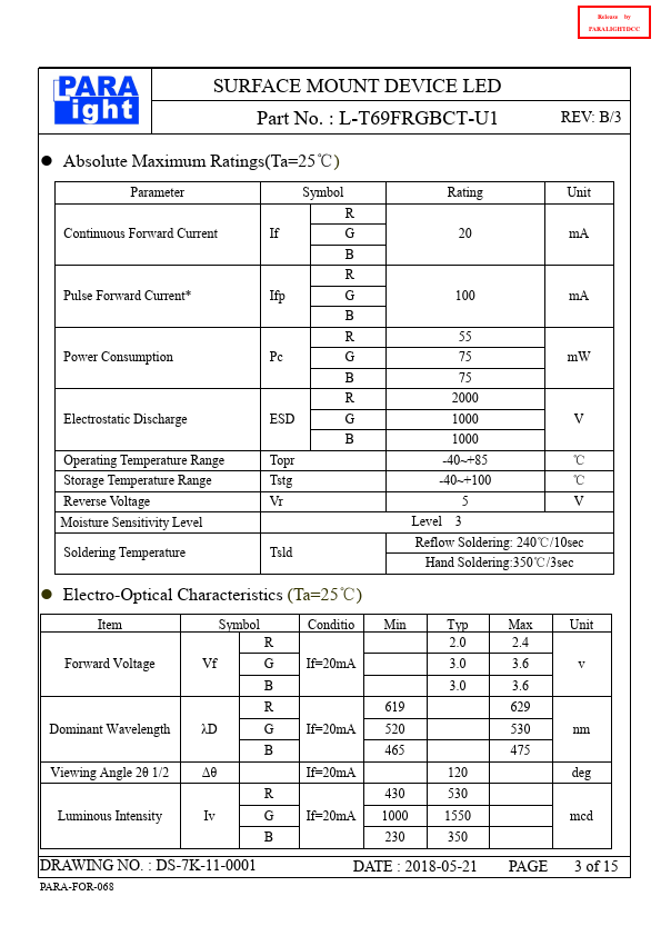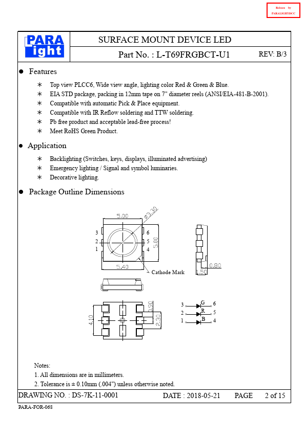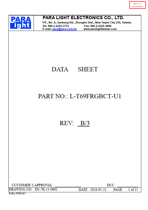 Release by PARALIGHTDCC PARA LIGHT ELECTRONICS CO., LTD. 8, Jiankang Rd., Zhonghe Dist., New Taipei City 235, Taiwan, Tel: para@para..tw .paralighttaiwan.