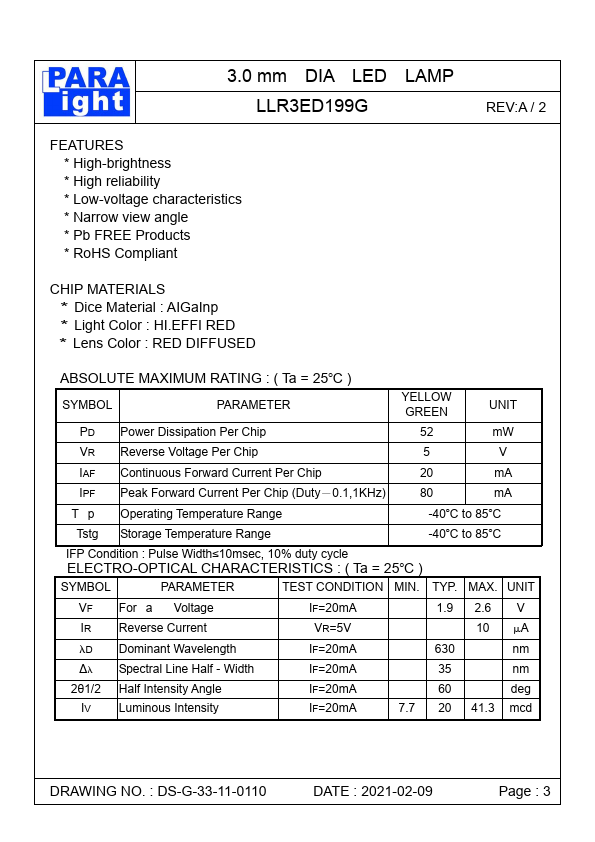 | Part number | LLR3ED199G |