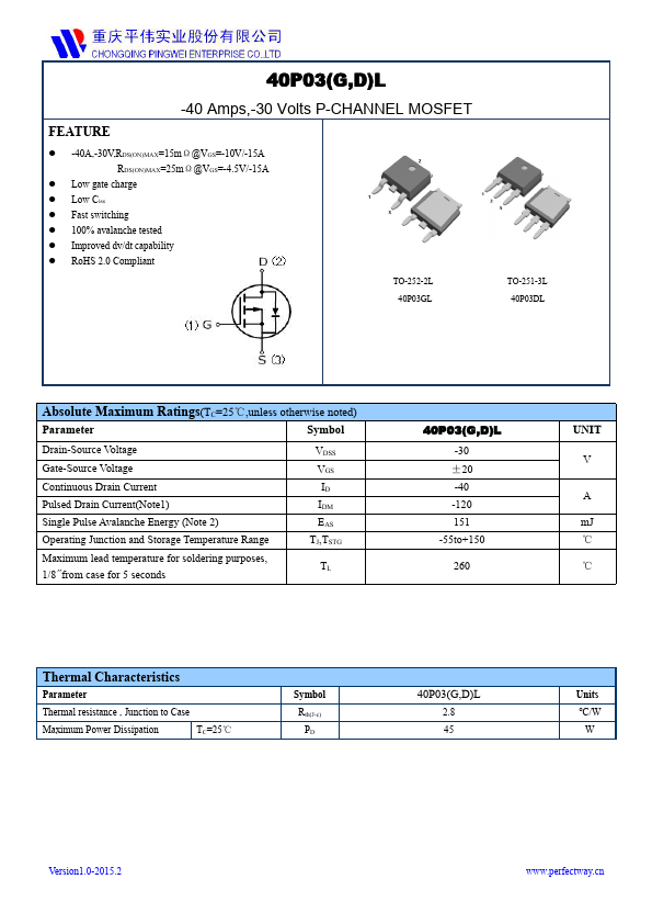 | 40P03 | P-Channel Enhancement MOSFET | Kexin |