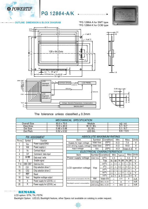 - PG12864LRS-JNN-B — Powertip Technology — LCD