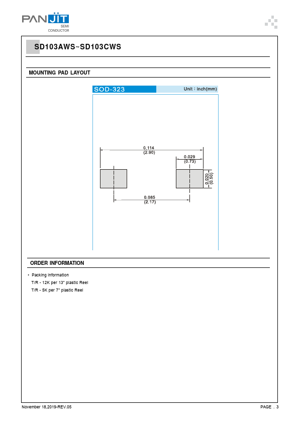 SD103AWS~SD103CWS SURFACE MOUNT SCHOTTKY BARRIER VOLTAGE 20 to 40 Volt CURRENT 0.35 Ampere.
