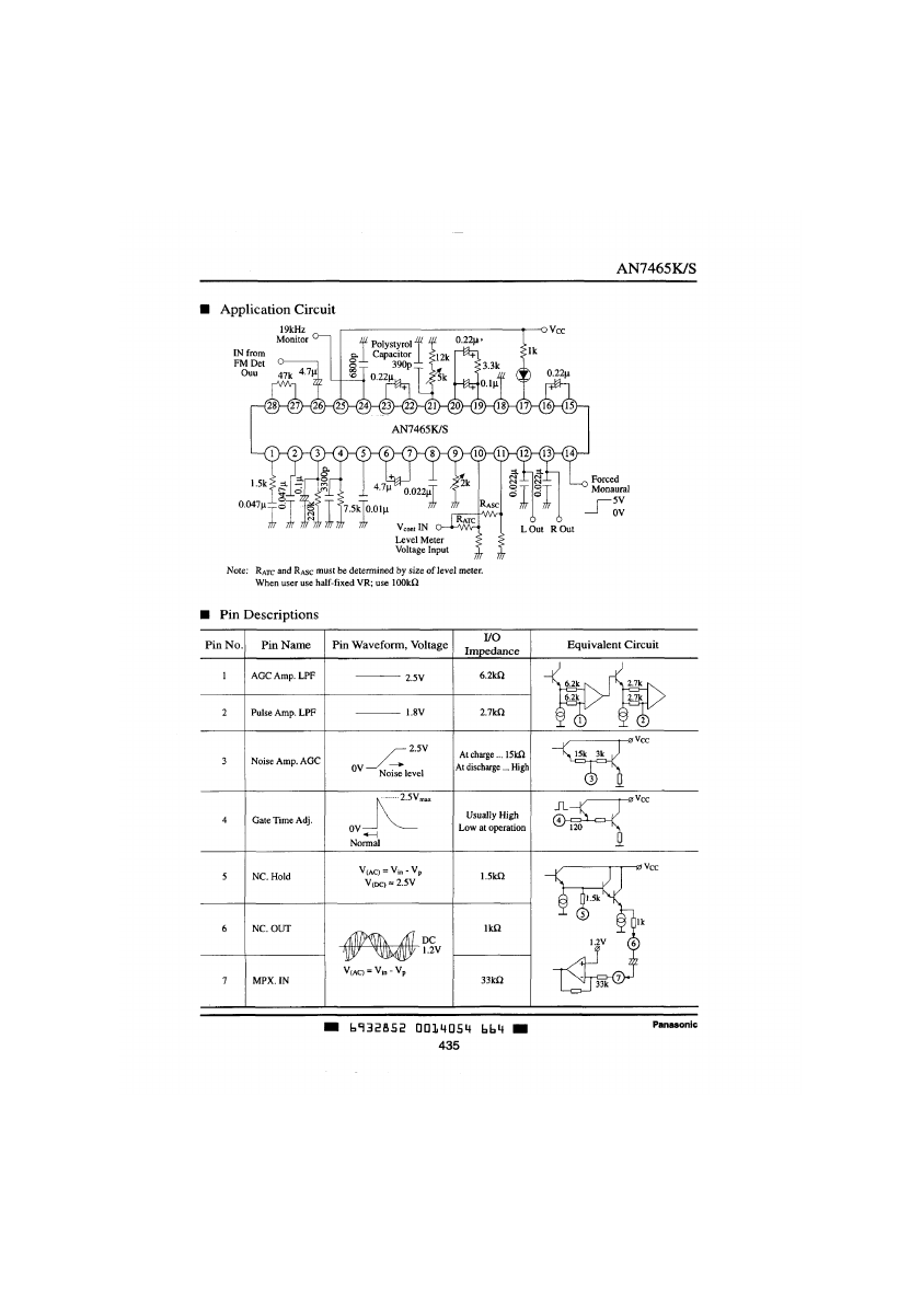 The AN7465K/S are the monolithic integrated circuits for car stereo configured FM noise canceller and PLL multiplex demodulator in a single chip.