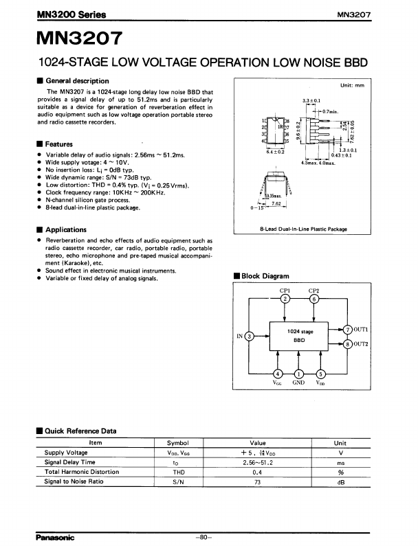 | MN3307 | 1024-Stage Ultra Low Voltage Operation BBD |