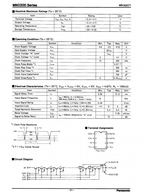 | MN3208 | 2048-Stage Low Voltage Operation Low Noise BBD |