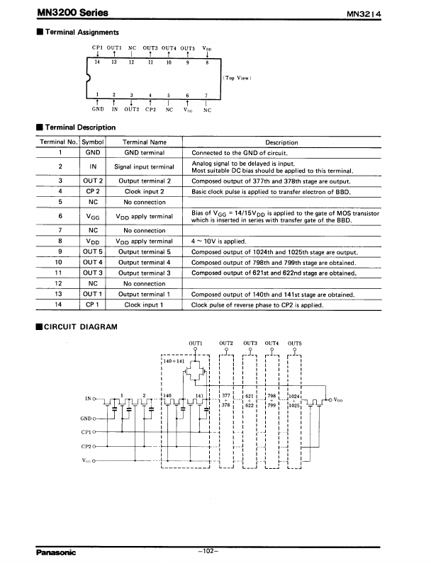 | MN3207 | 1024-Stage Low Voltage Operation / Low Noise BBD |
